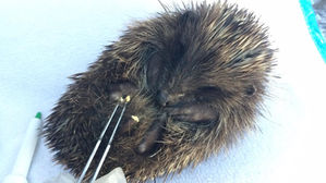 Once in the rescue all the hedgehogs are thoroughly checked for external parasites and any ticks, fly strike and maggots are removed. Fly strike are eggs laid by flies and if not removed can quickly hatch into maggots. Depending on